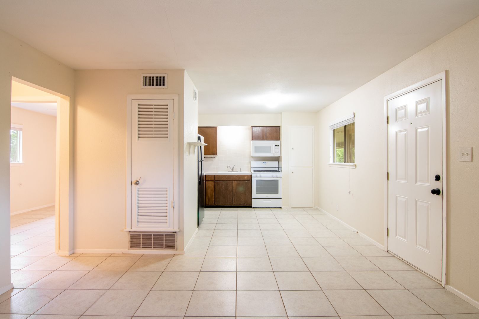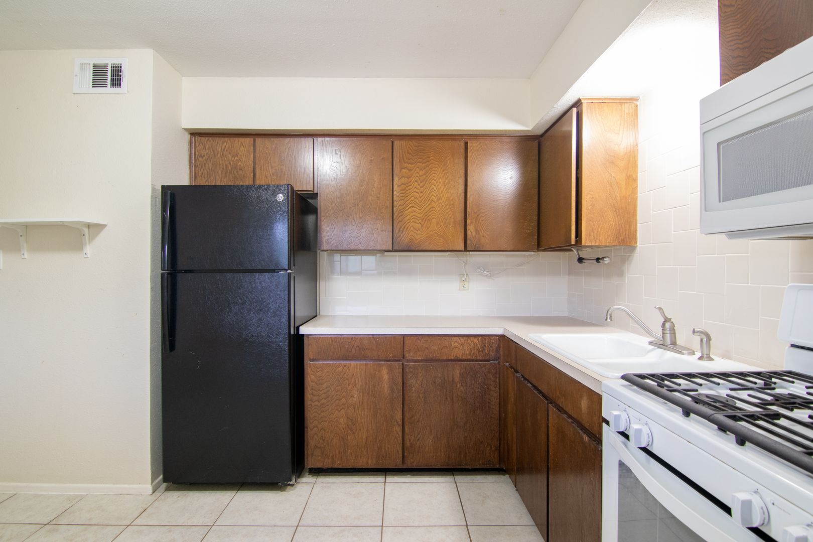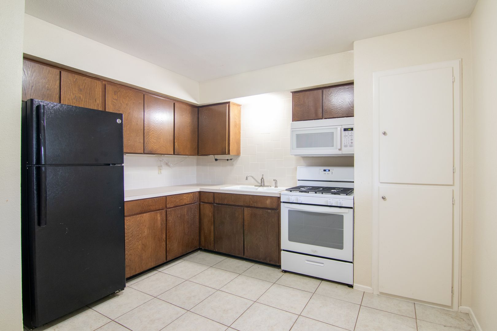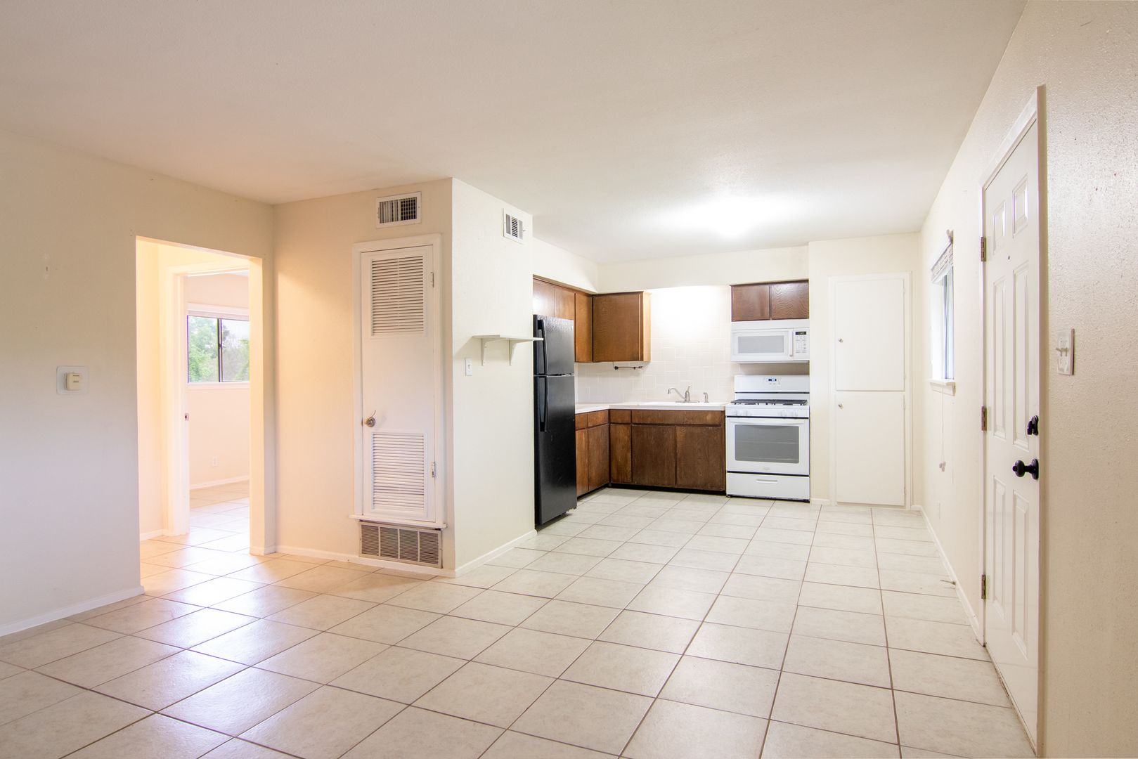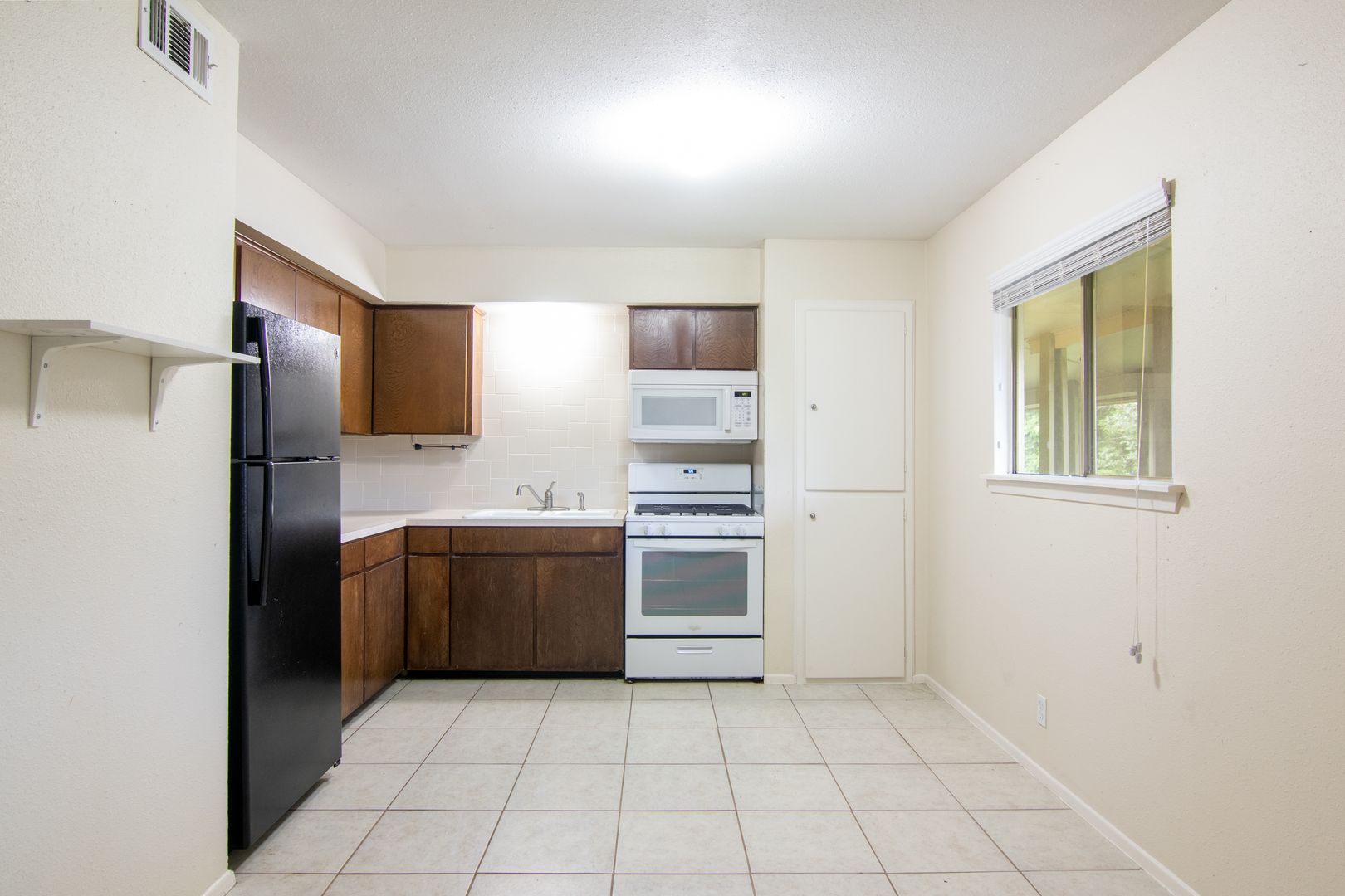 This second-floor unit features a 1 spacious bedroom and one modern bathroom. The kitchen comes equipped with a refrigerator, microwave, and gas oven/stove.