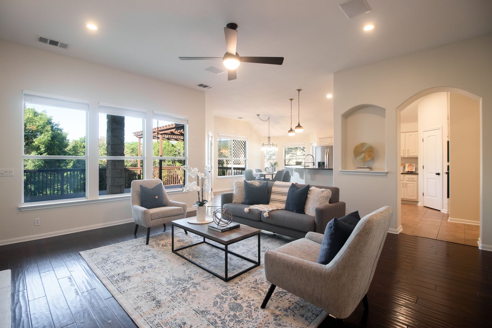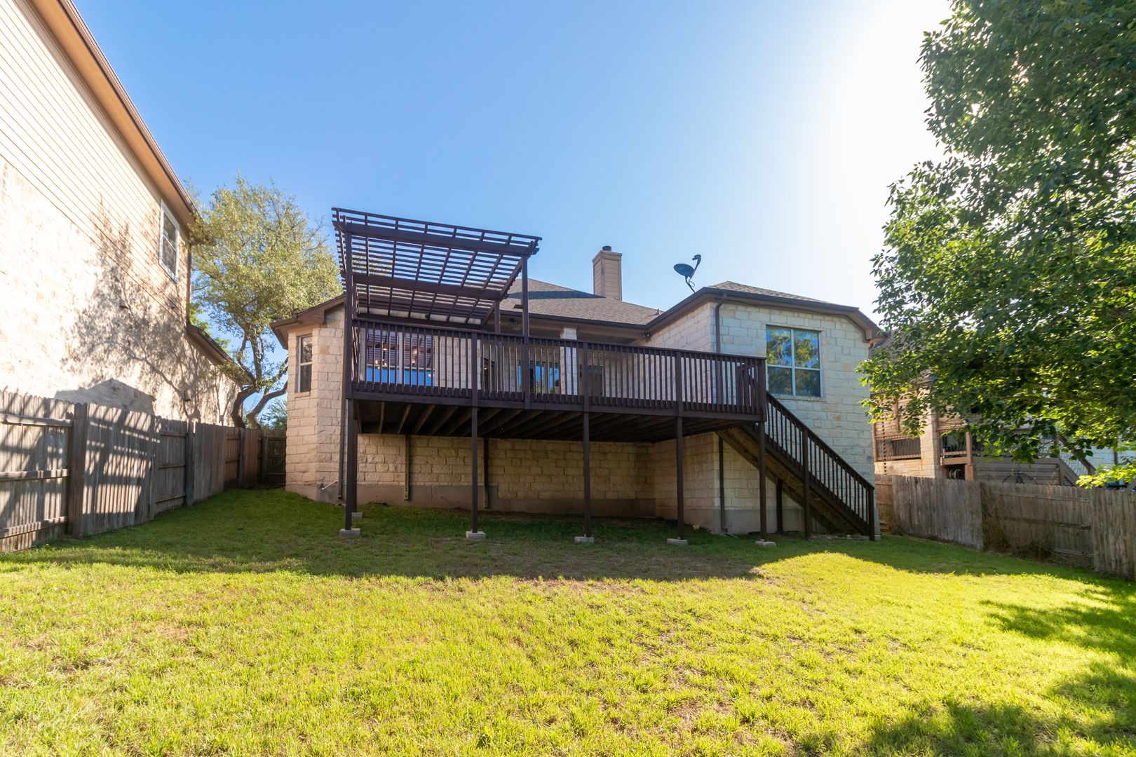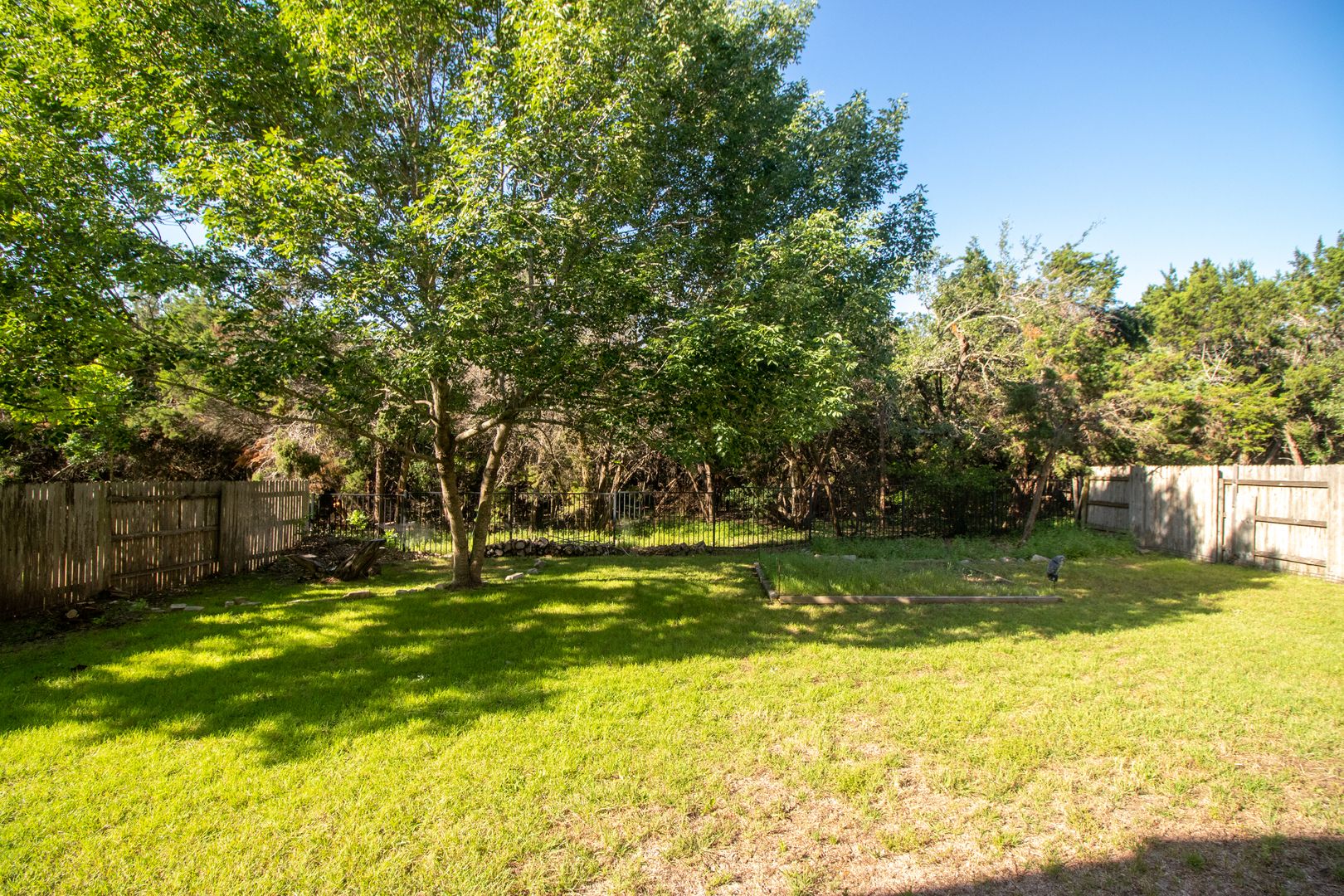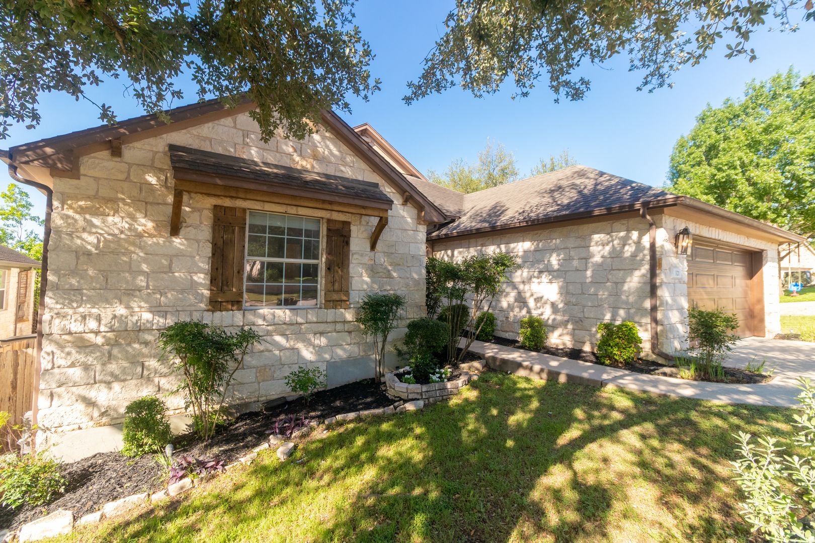 This newly renovated three-bedroom, two-bathroom house with dedicated office space perfect for working from home or as a quiet place to study. This house is located on a quiet cul-de-sac with a backyard that backs to a nature preserve, providing a sense of tranquility and seclusion. Upon entering the home you are greeted with an open floor plan, high ceilings, and plenty of natural light. The living room features large windows that provide ample natural light and a cozy fireplace perfect for the cooler months. The kitchen features stainless steel appliances, gas cooktop, granite countertops, a walk-in pantry, and plenty of cabinet space.The dining area is located adjacent to the kitchen and can accommodate a large table, perfect for hosting dinner parties. The primary suite features a large walk-in closet and spa-like en-suite bath complete with quartz countertops, a separate walk-in shower boasting dual shower heads, and a large soaking tub allowing you to unwind and recharge after a long day. The two guest bedrooms have walk-in closets and share a bathroom that has been beautifully updated. The private backyard features an expansive lawn and large deck, perfect for outdoor dining or relaxing. Other features of this home include hardwood floors throughout, a laundry room with storage, and a two-car garage. Additionally, the house is within walking or biking distance to nearby restaurants, shops, and the movie theater. The neighborhood also includes a community pool with a splash pad, a gym, a basketball court, and sports field, as well as several large parks, playgrounds, picnic areas, and an extensive network of walking trails perfect for exploring the hill country.