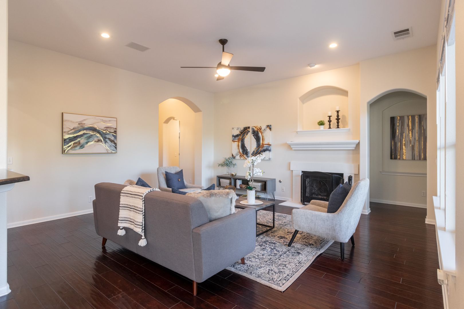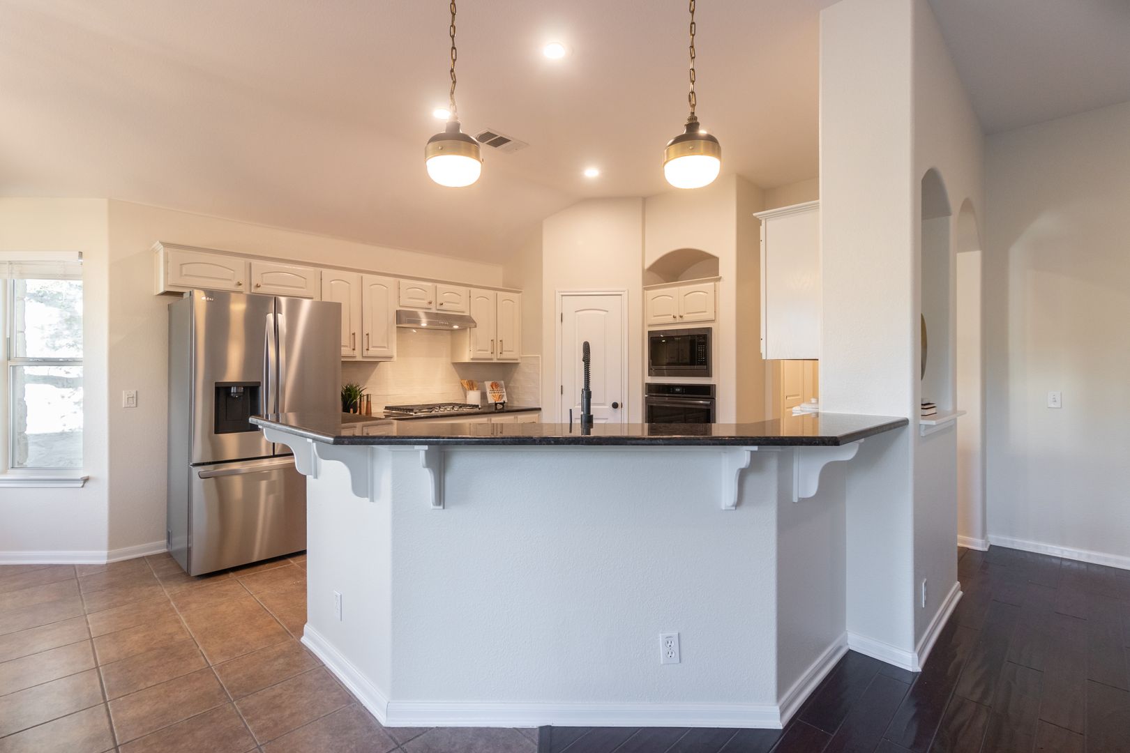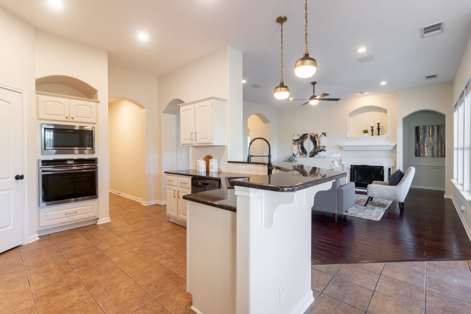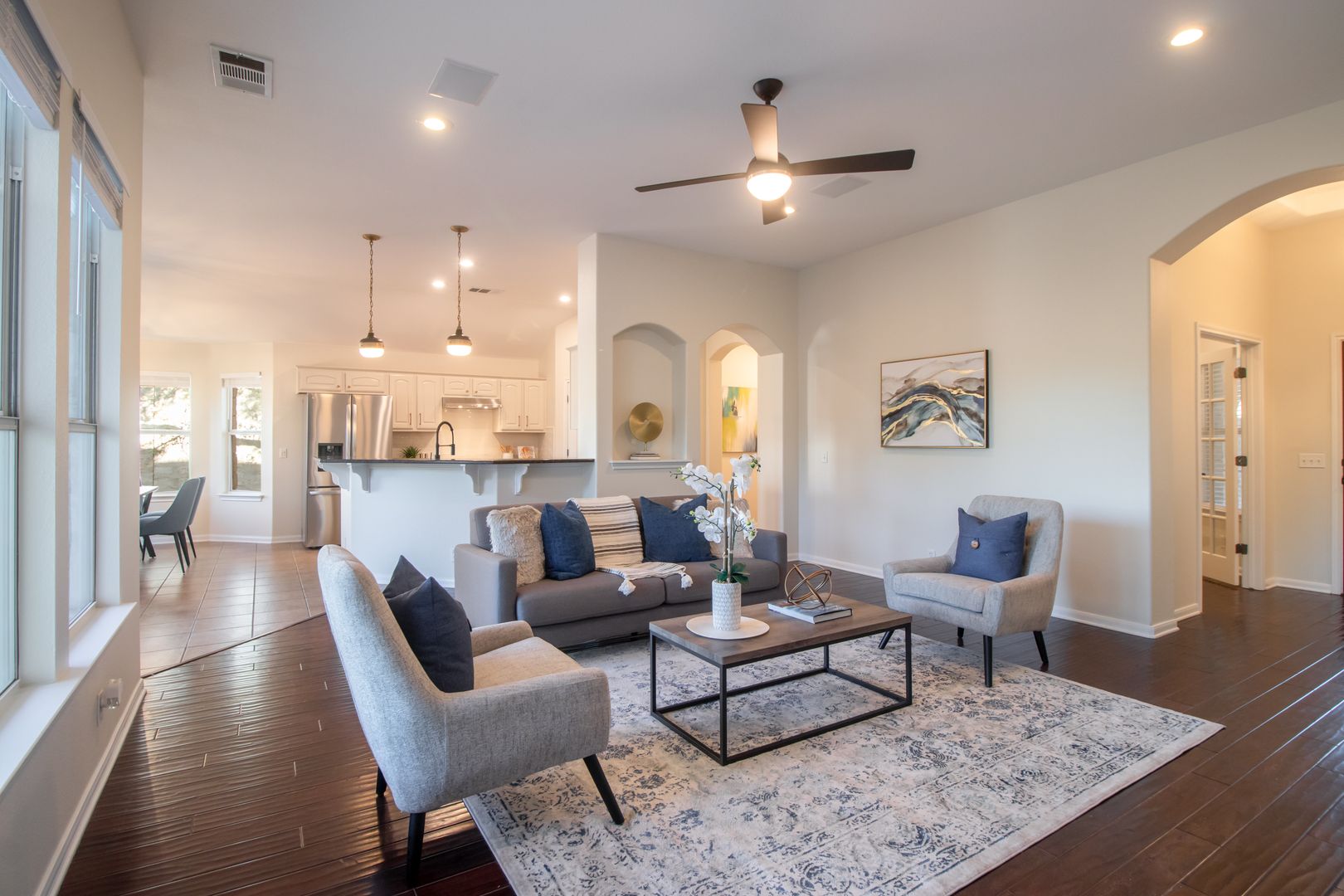 This newly renovated three-bedroom, two-bathroom house with dedicated office space perfect for working from home or as a quiet place to study. This house is located on a quiet cul-de-sac with a backyard that backs to a nature preserve, providing a sense of tranquility and seclusion. Upon entering the home you are greeted with an open floor plan, high ceilings, and plenty of natural light. The living room features large windows that provide ample natural light and a cozy fireplace perfect for the cooler months. The kitchen features stainless steel appliances, gas cooktop, granite countertops, a walk-in pantry, and plenty of cabinet space.The dining area is located adjacent to the kitchen and can accommodate a large table, perfect for hosting dinner parties. The primary suite features a large walk-in closet and spa-like en-suite bath complete with quartz countertops, a separate walk-in shower boasting dual shower heads, and a large soaking tub allowing you to unwind and recharge after a long day. The two guest bedrooms have walk-in closets and share a bathroom that has been beautifully updated. The private backyard features an expansive lawn and large deck, perfect for outdoor dining or relaxing. Other features of this home include hardwood floors throughout, a laundry room with storage, and a two-car garage. Additionally, the house is within walking or biking distance to nearby restaurants, shops, and the movie theater. The neighborhood also includes a community pool with a splash pad, a gym, a basketball court, and sports field, as well as several large parks, playgrounds, picnic areas, and an extensive network of walking trails perfect for exploring the hill country.