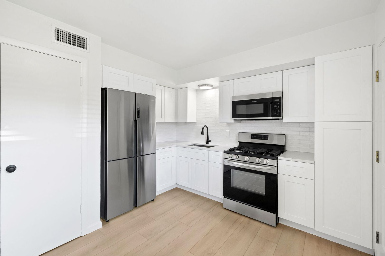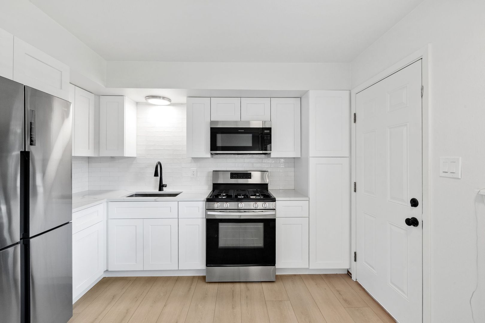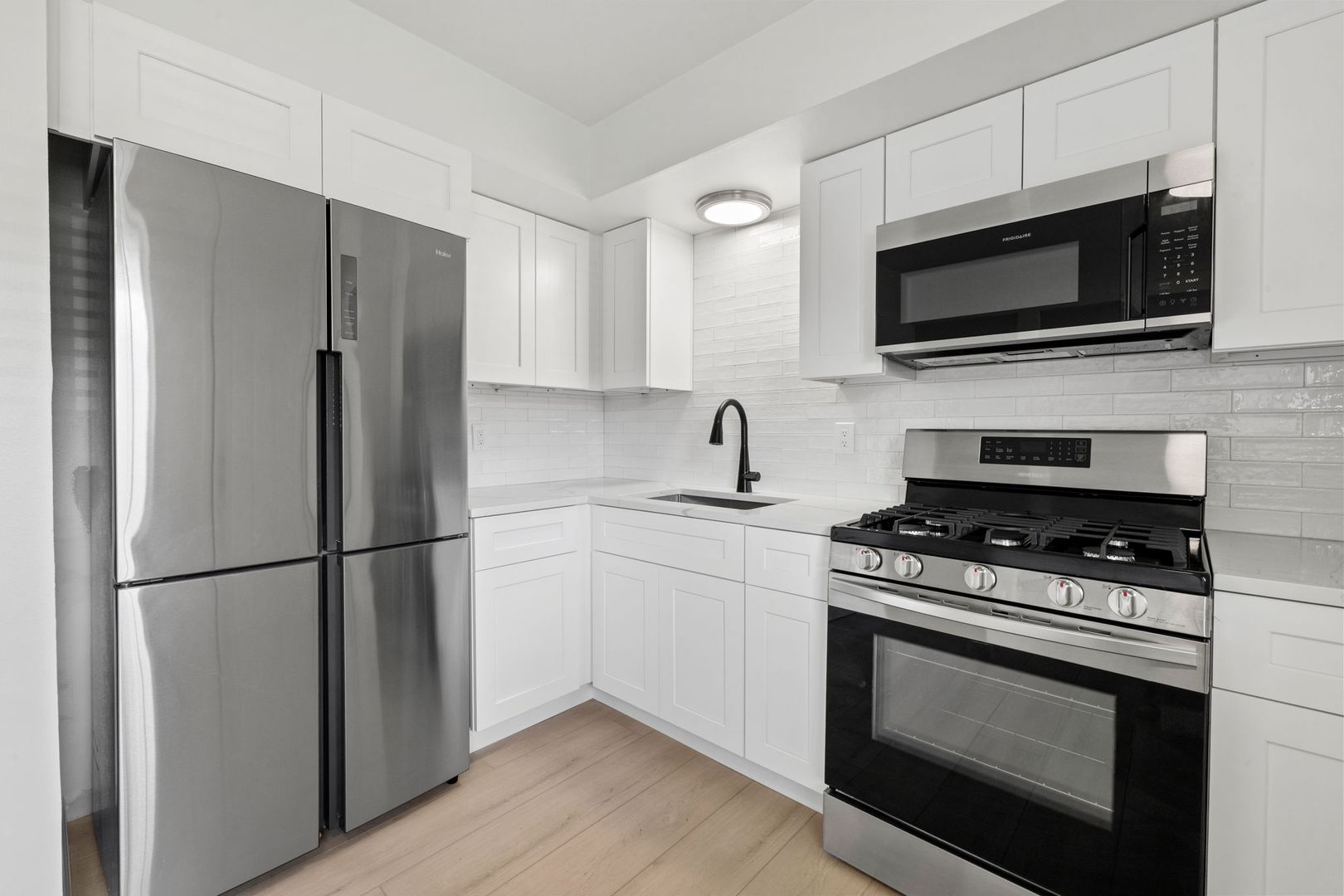 This beautifully renovated first-floor unit features a spacious bedroom and one modern bathroom. The kitchen comes equipped with a refrigerator, microwave, and gas oven/stove.