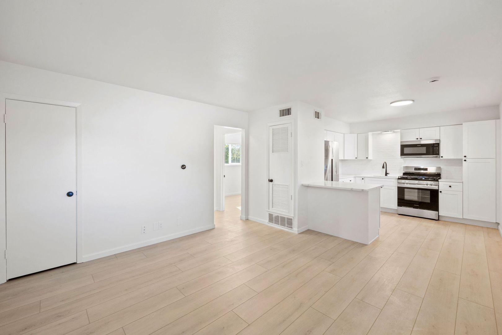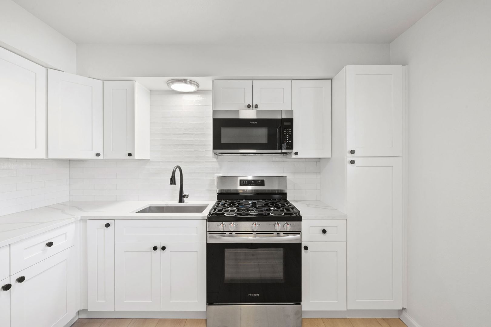 This beautifully renovated first-floor unit features a spacious bedroom and one modern bathroom. The kitchen comes equipped with a refrigerator, microwave, and gas oven/stove.